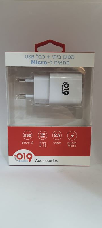 מטען קיר 2 יציאות USB + כבל מיקרו אורך 1.5 מטר